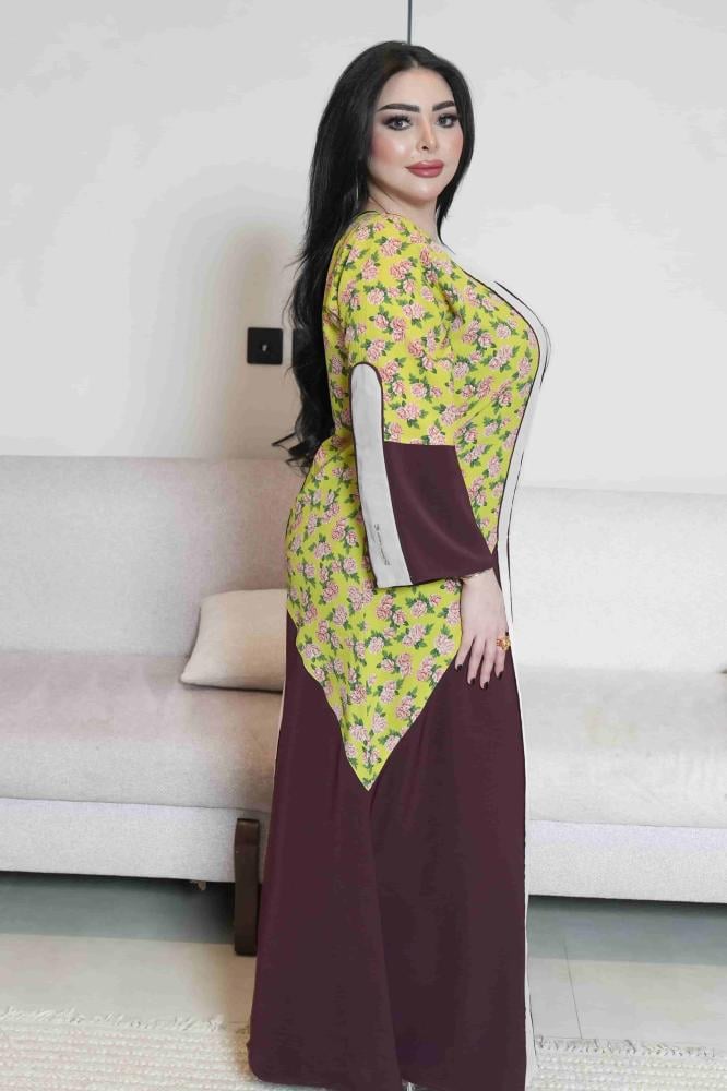 وتفاصيل وردية على خلفية ليمونية مشرقة تضيف لمسة بهجة راقية.
